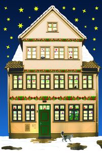 Das Vorderbild der Karte zeigt unser weihnachtlich geschmücktes Haus vom Klint aus betrachtet. Hinter den Türchen findet sich eine lustige Geschichte über die Bürgerstiftung mit Bezügen zur biblischen Weihnachtsgeschichte. Die Karte kann aufgeklappt und innen mit Ihren persönlichen Wünschen und Grüßen an Freunde, Bekannte oder die Familie verschenkt werden – ein schöner vorweihnachtlicher Gruß für alle Braunschweig-Fans!