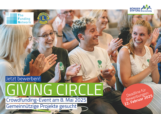 Ihr habt eine gute Idee, die das Zusammenleben hier in Braunschweig und Umgebung besser macht? Ihr sucht Unterstützung, um ein bestehendes Projekt weiter zu entwickeln? Ihr benötigt eine Teilfinanzierung für eine Maßnahme Eures Projekts? Dann ist der Giving Circle die richtige Plattform für euch! Gemeinnützige Projekte haben die Chance, an einem einzigen Abend mehrere Tausend Euro für ihr Projekt einzuwerben und sich zu vernetzen. Seid dabei, wenn es wieder heißt: „Wer bietet mehr?" Eine Bewerbung ist bis zum 22. Februar 2025 möglich.